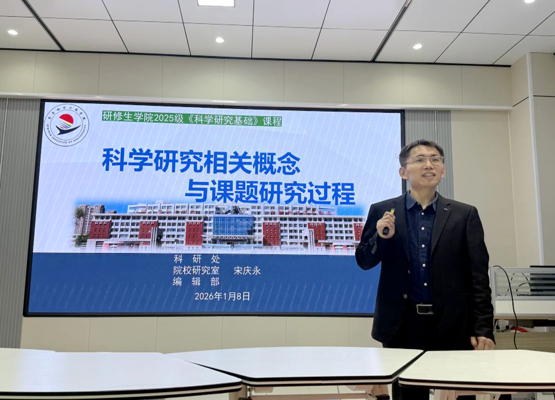 近日,研修生院为研修生开展首期通识教育系列课程,聚焦研修生“双师”能力成长需求,系统涵盖通识教育、马克思主义基本原理、科研方法论、现代教育技术应用四大核心内容,助力研修生快速适应跨领域研究与实践岗位,为其成长为应用型、职业型创业者筑牢思想根基、夯实能力基础。研修生院邀请通识教育学院副院长张洪岩、马克思主义学院教师邵奇、科研处教师宋庆永担任主讲教师,为全体研修生带来内容丰富、思想深刻的专题授课。