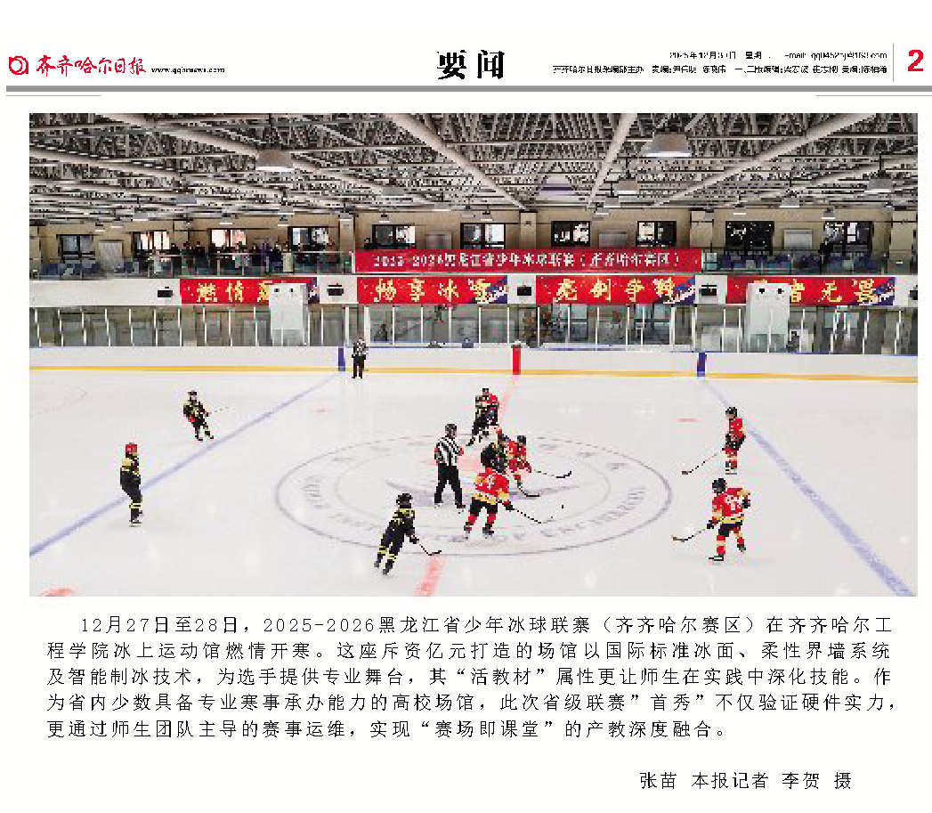 《齐齐哈尔日报》冰雪产教融合亮眼!齐齐哈尔工程学院冰上运动馆激情开赛