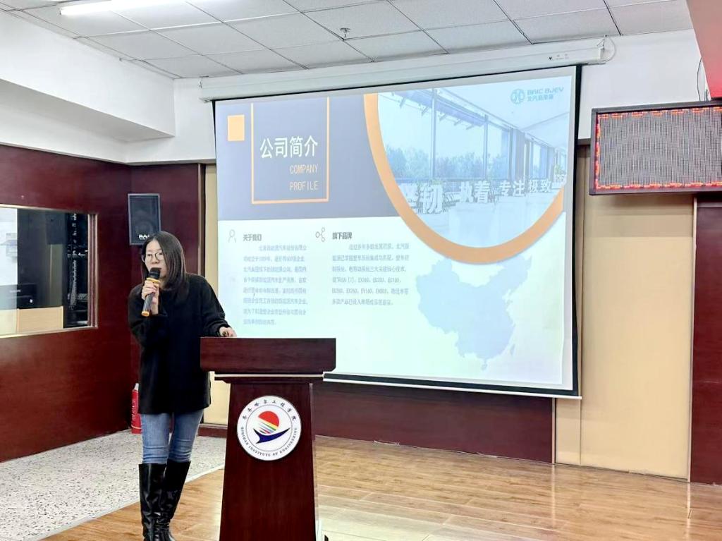 本次宣讲会由北汽集团人力资源部组织,联合研发、生产、市场等核心业务部门共同参与。活动伊始,企业代表通过宣传短片和系统讲解,向同学们介绍了北汽集团的发展历程、产业布局与行业地位,重点展示了其在新能源汽车、智能网联等领域的前沿成果与创新实力。