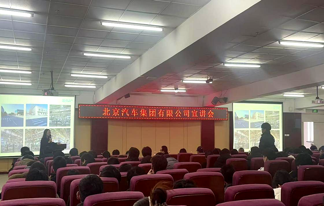 近日,北京汽车集团有限公司2026届校园招聘宣讲会在我校图书馆501会议室顺利举办。作为中国汽车行业领军企业和世界500强企业,北汽集团的此次宣讲吸引了来自机电学院多个专业的近200名应届毕业生踊跃参与,现场座无虚席,互动热烈。