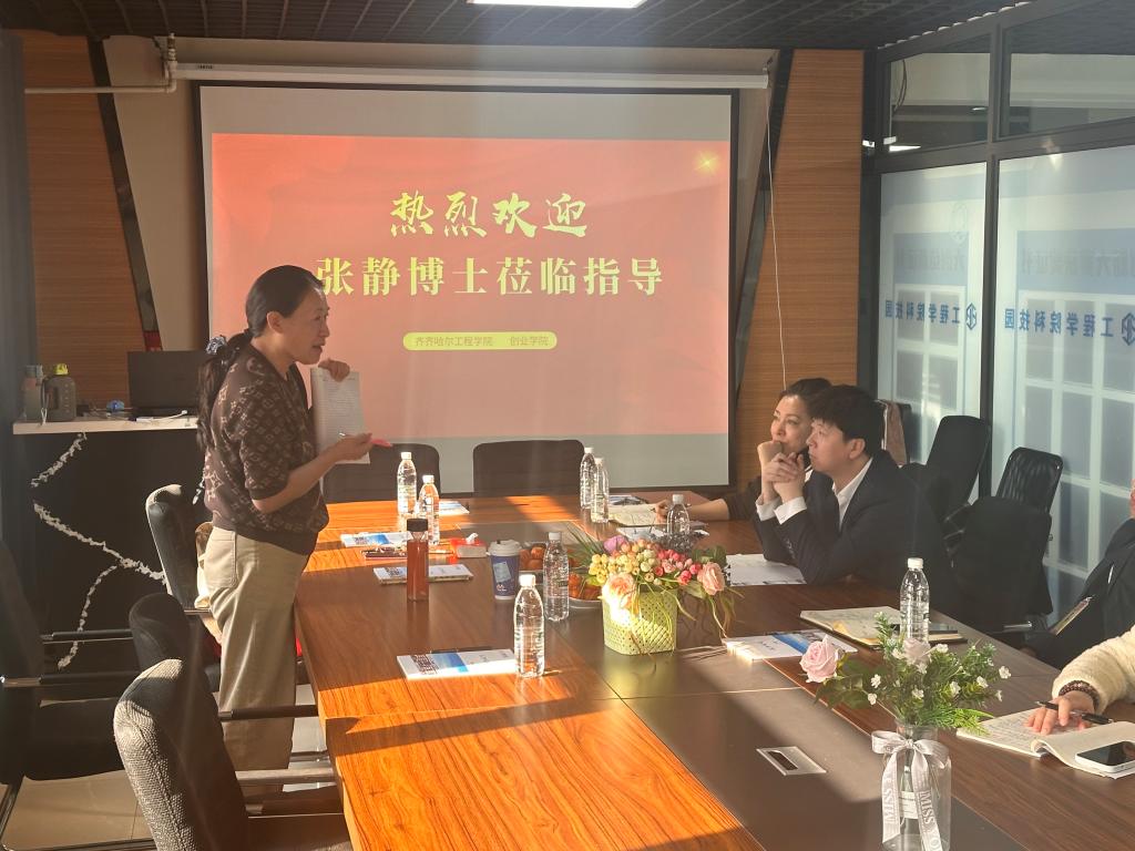 座谈会上,单大海首先对张静的到来表示热烈欢迎,随后提出了当前学院在双创项目落地路径等方面遇到的困惑。张静凭借丰富的双创教育经验与深厚的学术积淀,为在场教师提供了极具针对性的指导与宝贵建议。