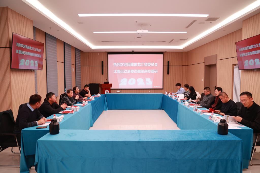 11月7日,以民建黑龙江省委会秘书长邱瑞为组长的冰雪运动消费课题调研组一行八人莅临我校开展调研指导。校长、党委副书记曹然彬,党委副书记、纪委书记、副校长陈景鑫,副校长崔晓东热情接待调研组一行。