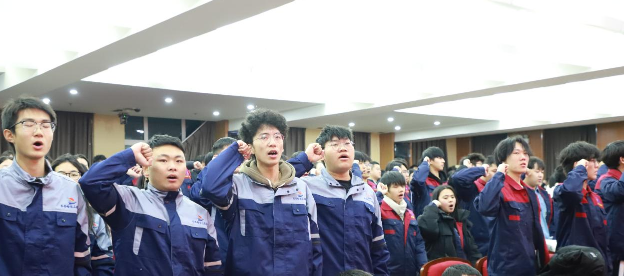 新生代表、信息学院电科251班姚成博同学满怀憧憬地表达了对实践学期的期待。他特别提到了“回访母校,分享成长感悟”这一实践环节,希望通过回到高中母校,与学弟学妹们分享自己在齐工程的学习体验与成长变化,将学校的培养理念与校园氛围真实、生动地传递给他们,并在感恩回望中深化自我认知,立志在各项实践中求真学问、练真本领。发言结束后,他带领全体学生高举右拳,以青春的名义庄严宣誓:“弘扬‘亮剑’精神,深入基层,践行担当……”铿锵有力的誓言响彻会场,充分展现了齐工程学子积极参加实践、勇担社会责任的坚定决心。