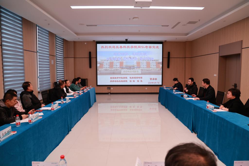4月17日,长春科技学院董事长张电达、常务副校长刘洋一行14人来校调研交流,创校校长、理事长曹勇安,副校长白雪出席,相关部门负责人陪同。