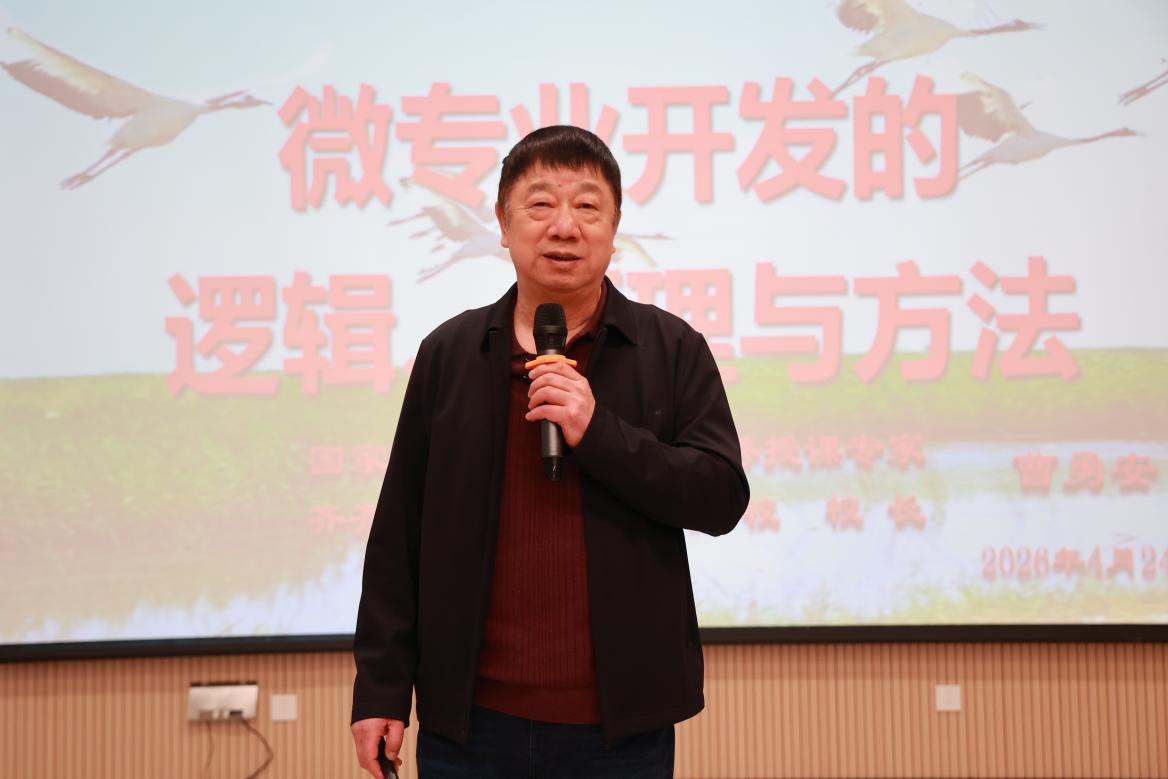 24日上午,曹勇安在人民会堂卜奎厅作题为《微专业开发的逻辑、原理与方法》专题讲座。讲座以“教育在人类发展史上的三次大变革”为切入点,深入阐释课程在教育变革中的核心地位及其对学校特色发展的作用;重点解读“四真三化(FT)”课程开发模式的内涵与实践路径,并以驾考为例,讲解三级矩阵对测量课点项目达成的作用。同时,系统解读微专业的定位、定义、功能、作用,说明了主专业和微专业的关系,介绍了学校产教融合23年的发展历程和取得的成果。