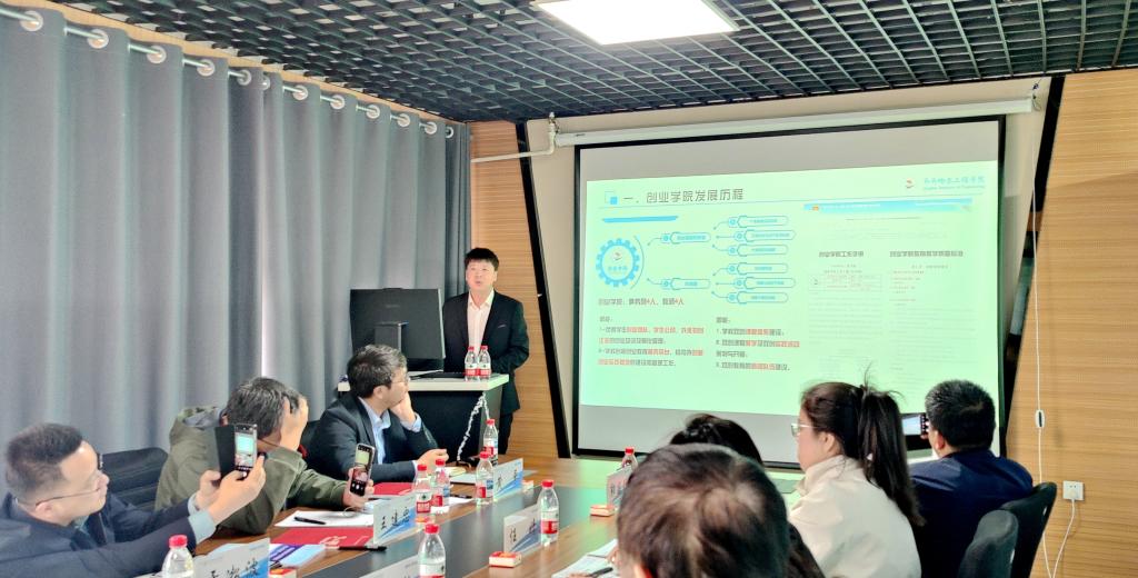 学校创业学院院长单大海围绕创业学院发展历程、特色做法、双创育人成效三个方面,详细汇报了学校创新创业教育的实践路径与取得的成效。