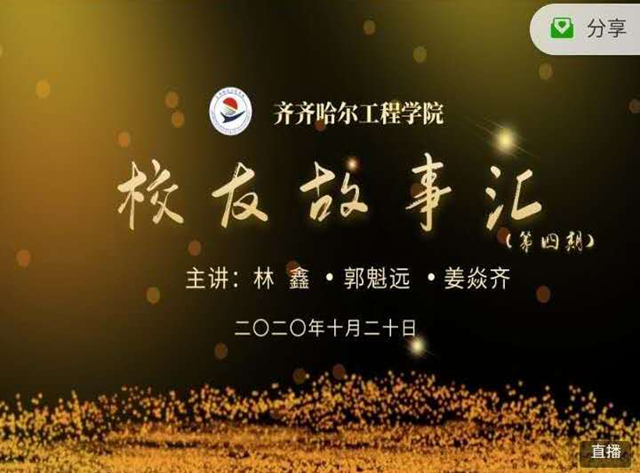 2020级新生军训生活刚刚结束,新学期课程开启。10月20日晚18时,学校举办第四期“校友故事汇”活动,全体2020级新生在教室通过直播平台观看,其他校友、在校生和社会各界人士3000多人在线参加活动。