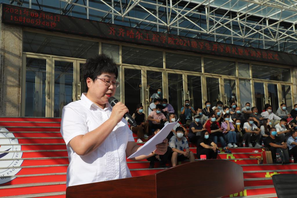 创校校长曹勇安理事长在仪式上代表学校向全体新生表示热烈欢迎,他回顾创校30年历程。指出,今天的校园文化就是明天的社会风气,选择一所学校就是选择一种文化。同学们选择齐齐哈尔工程学院,就是选择了一种创业文化。校园文化里“雕塑”飞机、大炮、坦克是隐性课程,希望同学们在军旅文化熏陶中成为一名战士,养成“亮剑”精神,今后走向社会可以勇往直前。