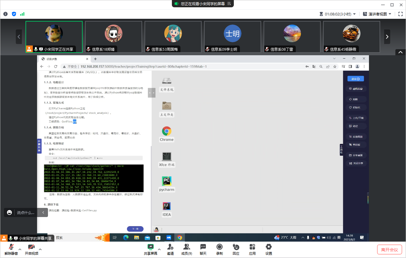 8月2日下午,信息工程系数据科学与大数据技术专业特邀北京华育兴业有限公司宋老师线上对其教研室7位教师进行技术培训,专业长高敏主持。