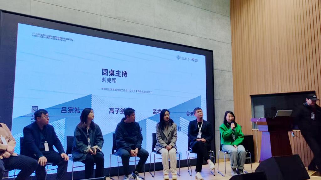 在圆桌论坛上,姜岩结合我校专业建设实际,提出数智时代动画教育需平衡技术应用与艺术创意,并建议高校联合企业共同开发“AI+动画”等实训项目。最后,姜岩、佟鑫参与了中国高等院校影视学会2025年度全国高校影视作品联合展映活动评审会相关交流环节,了解全国高校影视作品创作趋势与评审标准。