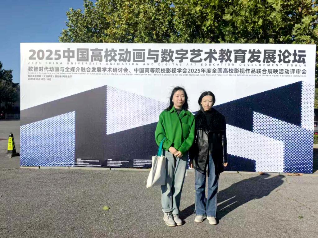 10月18日,2025中国高校动画与数字艺术教育发展论坛暨数智时代动画与全媒介融合发展学术研讨会在鲁迅美术学院举行。我校艺术与体育学院视觉传达设计专业长姜岩与动画专业长佟鑫老师共同参加。