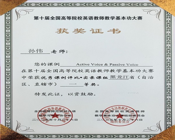 作为面向全国高校外语教师的大型公益赛事和全国规模最大的外语教师教学竞赛之一,本次大赛不仅被纳入全国普通高校教师教学发展指数,还入选了中国高等教育学会2024年重点监测的高校教师教学竞赛名单。本次赛事吸引了全国700多所高校、5000余名外语教师同台竞技,是衡量高校外语教师教学能力的重要标杆。大赛各赛项按参赛人数比例严格设奖,其中黑龙江赛区特等奖占比不超过5%,一等奖占比约10%,二等奖占比约15%,三等奖占比约20%,我校教师在高竞争强度下斩获多类奖项,彰显了扎实的教学功底。