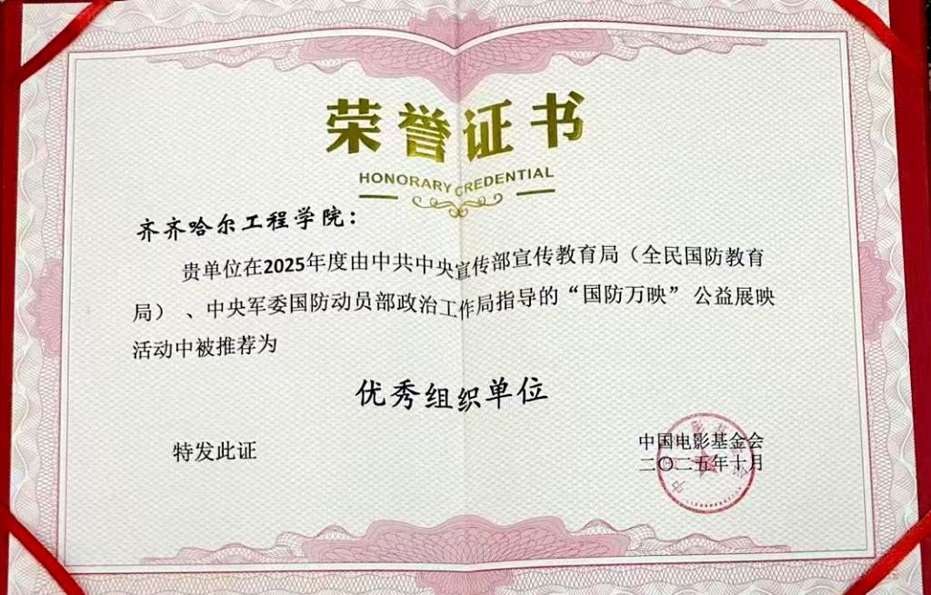 近日,“2025年国防万映公益展映活动” 表彰发布活动在河北师范大学顺利举行。该活动由中共中央宣传部宣传教育局(全民国防教育局)、中央军委国防动员部政治工作局联合指导,中国电影基金会统筹组织,覆盖范围广、社会影响力强,评选竞争尤为激烈。经严格遴选,我校成功斩获中国电影基金会授予的“优秀组织单位”奖,全国仅10所高校获此殊荣,我校位列其中,充分彰显了学校在国防教育领域的扎实基础与卓越组织成效。