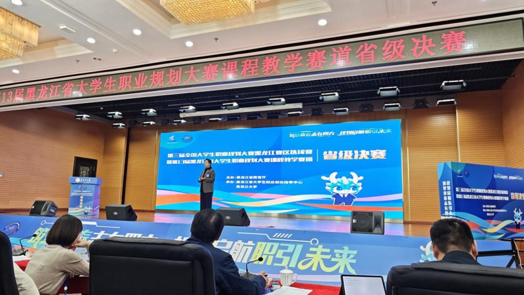 12月1日,由黑龙江省教育厅主办的“第三届全国大学生职业规划大赛黑龙江赛区选拔赛暨第十三届黑龙江省大学生职业规划大赛”课程教学赛道省级决赛(高教组)在黑龙江大学圆满落幕。我校学生发展中心主任康静凭借出色的教学设计与现场表现,荣获铜奖。