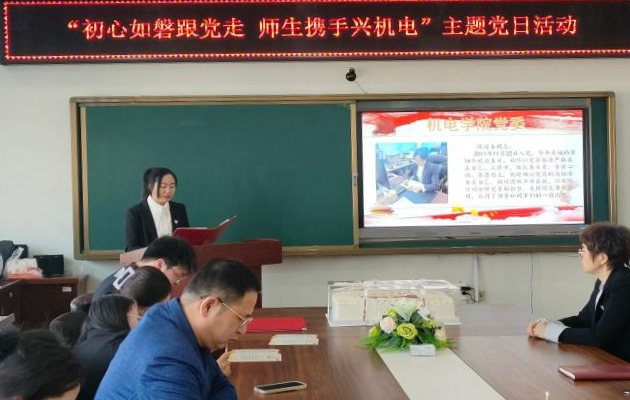 为进一步厚植党员党性根基,强化党员身份意识和党性修养,凝聚奋进新时代的磅礴力量,激励党员干部的责任感和使命感,12月18日,机电学院党委在图书馆608会议室举办“初心如磐跟党走,师生携手兴机电”主题党日活动。活动由机电学院学生党员韩宗畅主持,机电学院全体党员参加。