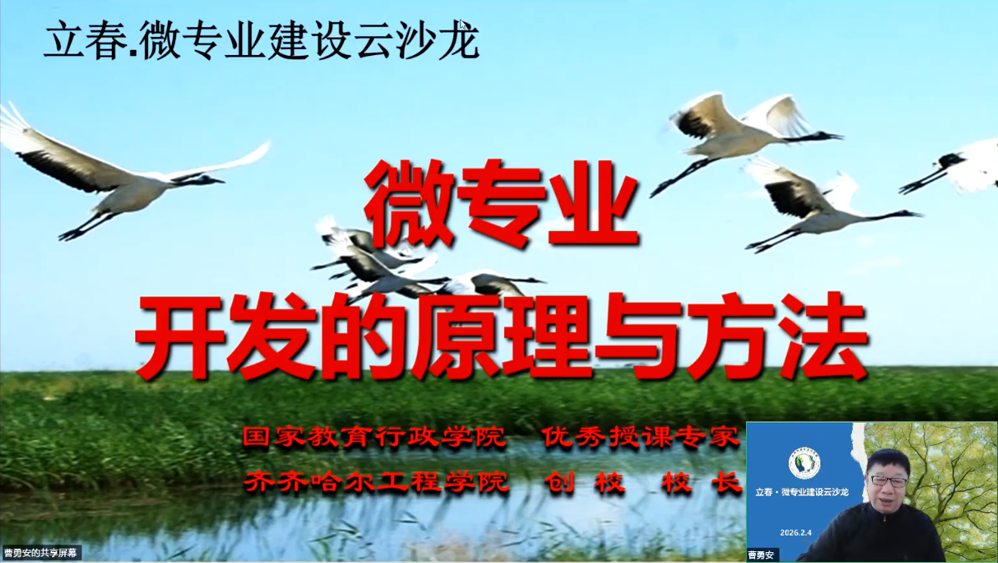 2月4日,由应用型课程建设联盟主办、我校承办的“立春·微专业建设云沙龙”在线举行。沙龙围绕“微专业建设原理与方法”主题,从学理逻辑、建设机制、数智赋能、平台协同等维度展开热烈研讨。活动通过微信视频号、抖音等平台进行公益直播,吸引了超过3000人次在线参与。