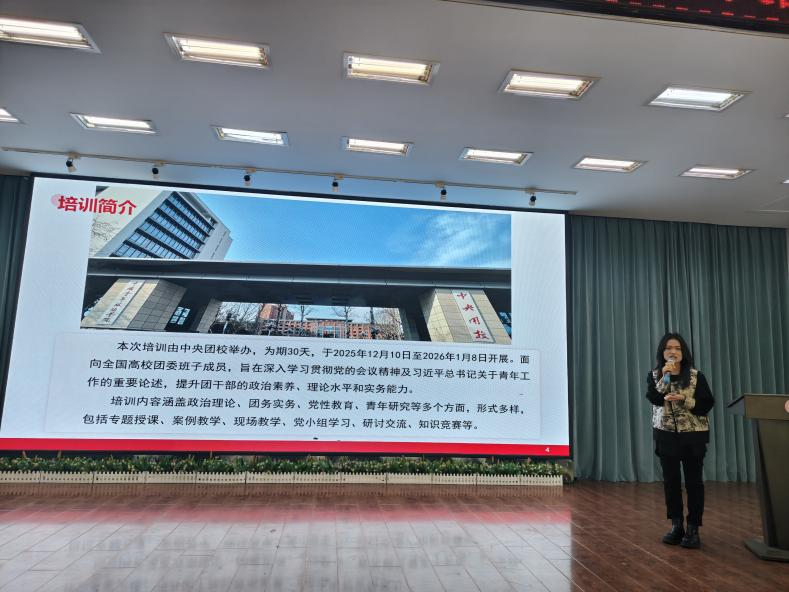 土木与管理学院宋雪微作赴中央团校学习汇报分享,她结合培训期间的课程学习、现场教学、研讨交流经历,分享了在政治理论武装、团务能力提升、党性教育锤炼、综合素养拓展等方面的所学所思所悟。