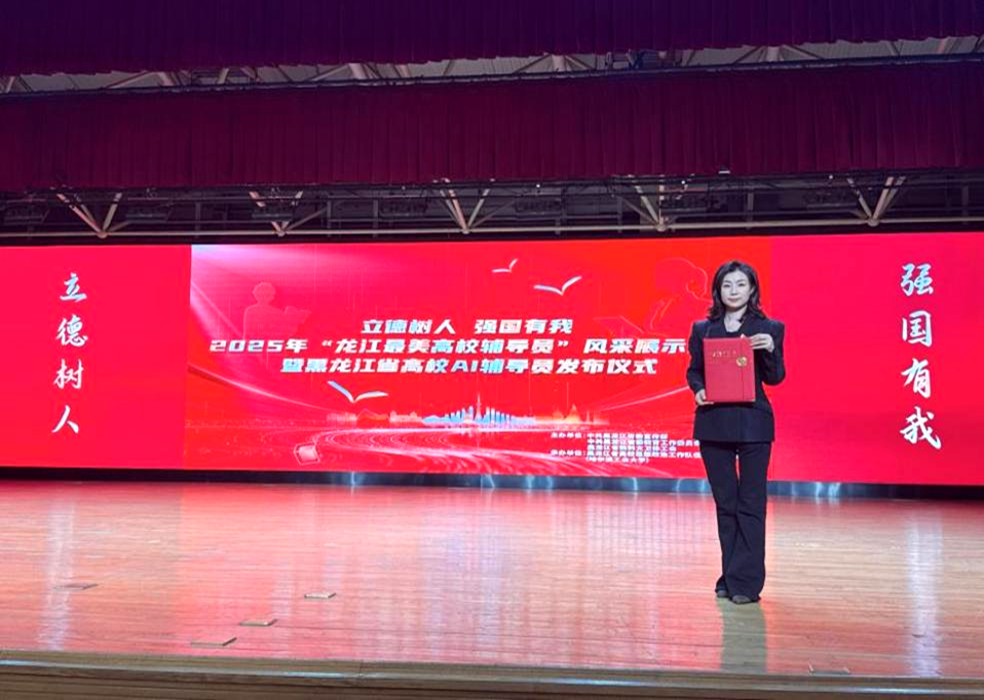近日,“立德树人 强国有我”2025年龙江最美高校辅导员风采展示活动暨黑龙江省高校AI辅导员发布仪式在哈尔滨工业大学举行。我校机电学院辅导员王虹荣获2025年“黑龙江省高校辅导员年度人物提名”称号,并上台领奖。校党委副书记、纪委书记、副校长陈景鑫,学生工作处处长王丽萍,辅导员代表参加活动。