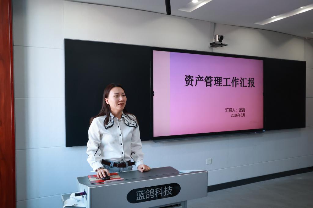 张磊在资产管理工作的总结报告中,全面回顾了2025年度在制度建设、资产清查、设备验收、队伍建设等方面的重点工作与成效。同时,深入分析了当前存在的问题,并提出相应改进措施。报告明确,2026年将以提升资产使用效益、服务申硕建设为核心,强化对资产利用率与完好率的管控,进一步加强资产管理能力建设,提升资产管理员履职效能,持续优化管理模式,实现资产管理工作提质增效。