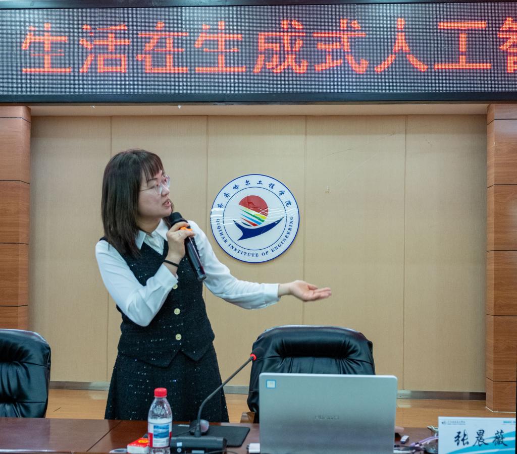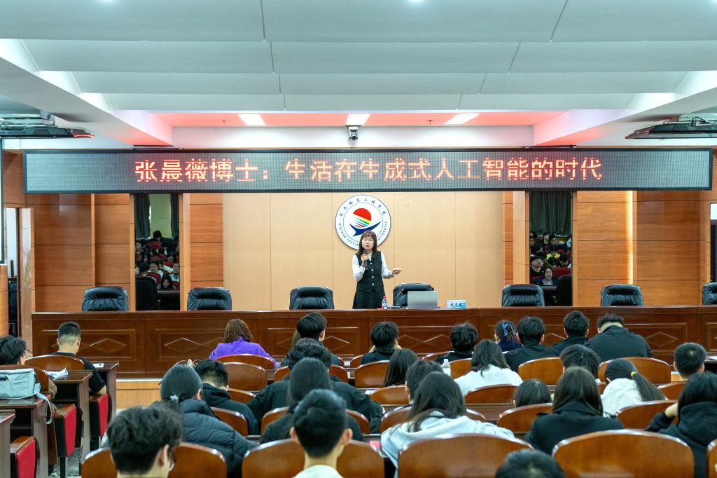 讲座中,张晨薇以清晰的逻辑脉络,系统厘清了传统人工智能与当前备受关注的生成式人工智能之间的本质差异。她指出,生成式人工智能实现了从“分析判断”到“创造生成”的跨越式发展,这不仅是技术能力的迭代升级,更标志着人机关系范式的根本性转变,为在场师生搭建起理解生成式AI的核心认知框架。