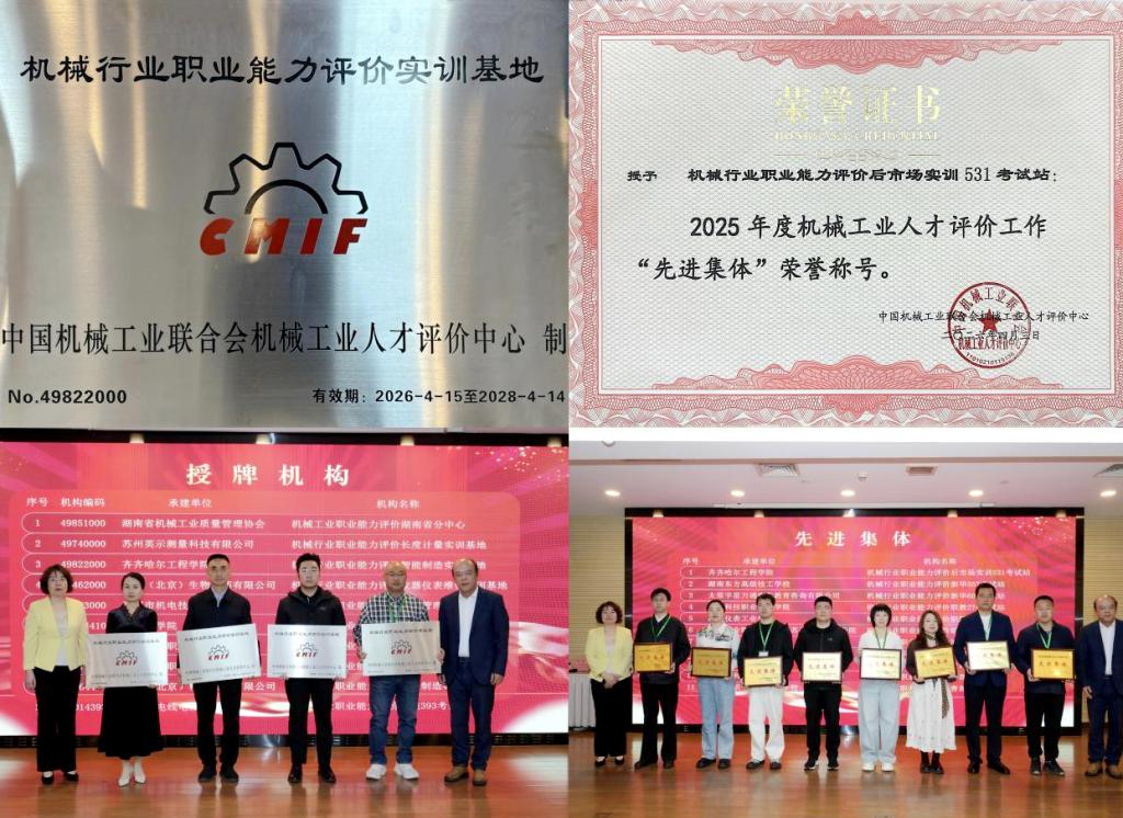 会议对2025年度机械工业人才评价工作先进集体予以表彰。我校作为机械行业职业能力评价后市场实训531考试站,长期深耕职业能力评价体系建设,不断创新人才培养模式,各项工作成效显著。此次取得荣誉,充分彰显了行业主管部门对我校办学水平与人才培养工作的高度认可。