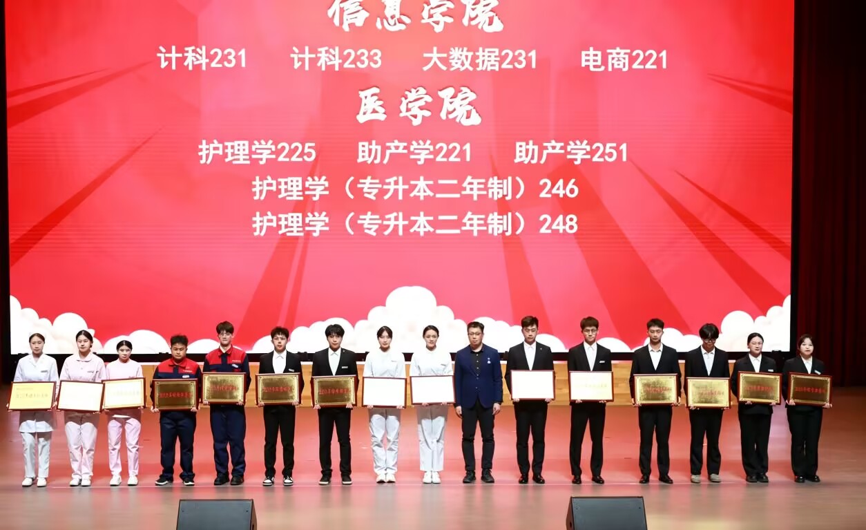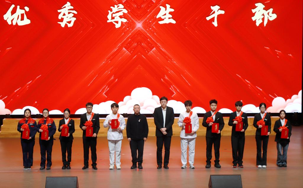 孙晓芳宣读《关于表彰2025年学生先进集体、先进个人的决定》,各学院党委副书记为优秀学生干部、三好学生、十佳大学生、优秀班集体获奖代表颁奖,激励全体学生以榜样为镜、向优秀看齐。