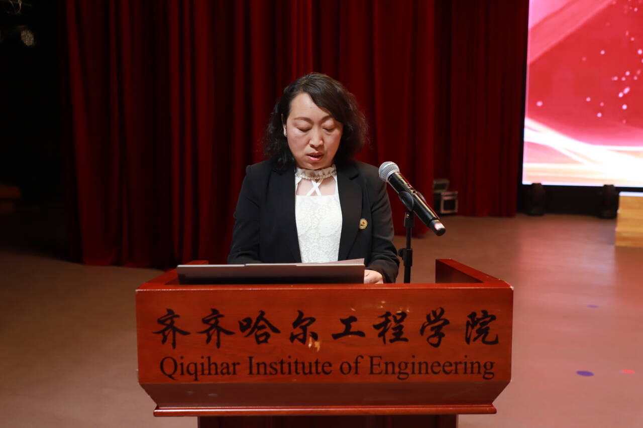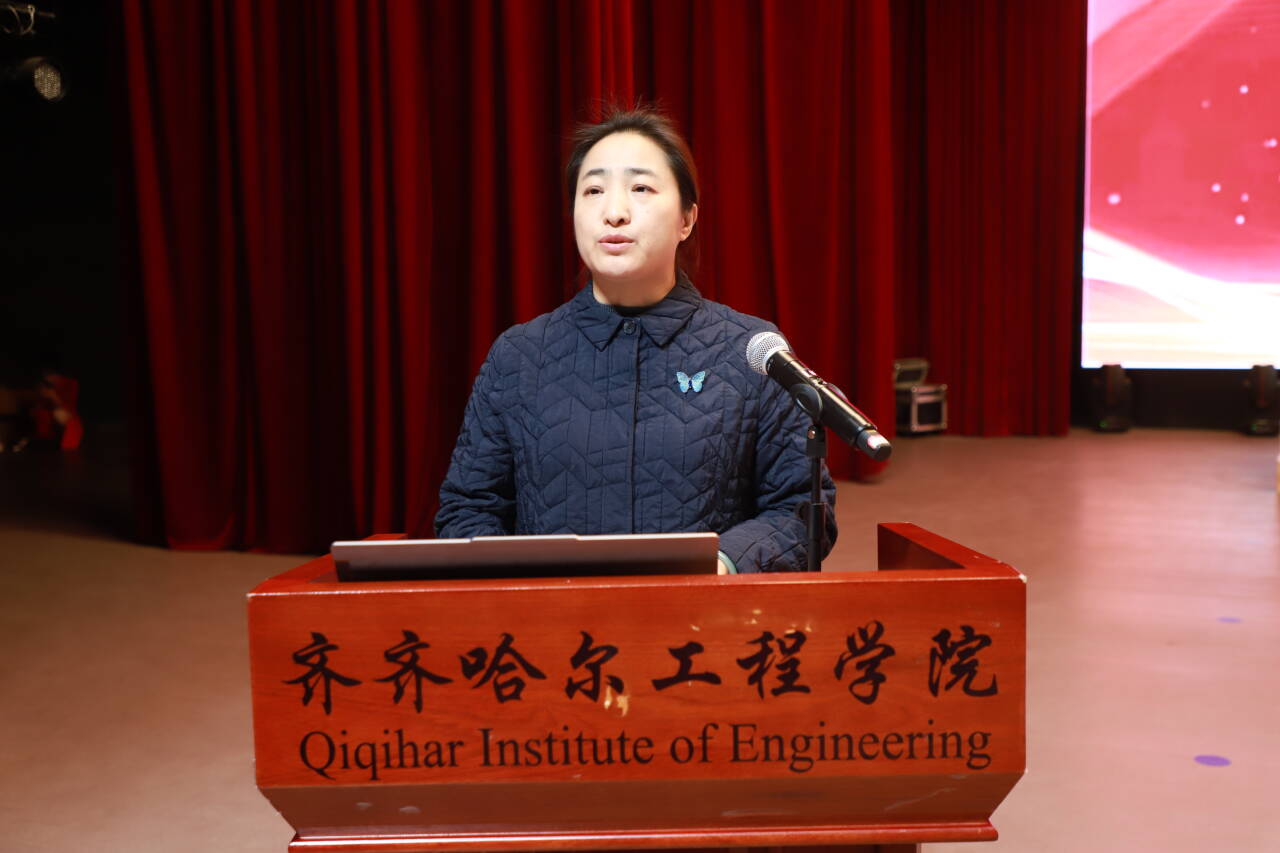 陈景鑫作总结讲话,她首先代表学校向全体受表彰的先进个人与集体表示祝贺,充分肯定过去一年全校学风建设与学生工作取得的成效。她指出,荣誉背后是学生们日复一日地刻苦钻研与不懈奋斗,是学校优良学风的生动体现。她对全体学生提出三点殷切期望:一是积极学习微专业,推动主专业与微专业深度融合;二是主动学习AI知识与技能,提升数字化素养与创新能力;三是立足专业特色,参与校企合作,将理论知识转化为实践本领,为职业发展筑牢根基。