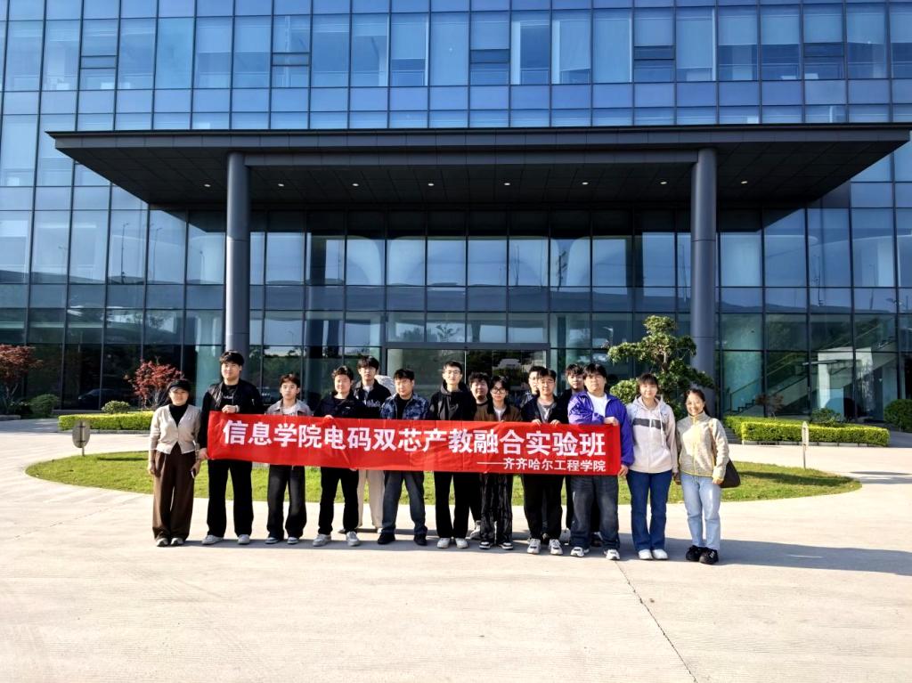 近日,学校信息学院在明德广场前举行“电码双芯”产教融合实验班第二批学子赴昆山丘钛微电子科技股份有限公司校外课堂欢送仪式。信息学院院长郝丽娜、副院长刘春媛、党委书记李野、党委副书记郭磊及各专业长、教师、生涯导师共同参加,欢送即将奔赴昆山丘钛微电子的学子们。