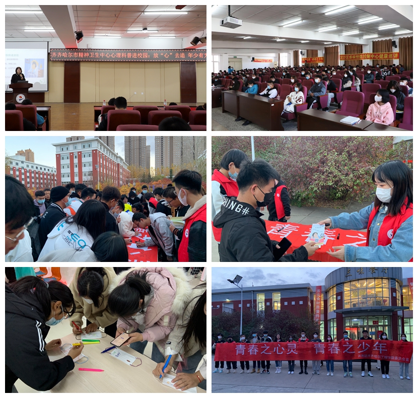 讲座结束后,学校团委在三味食堂门口举办了“青春之心灵,青春之少年”的主题签字活动,同学们积极参加,纷纷在条幅上留下自己的名字并合影留念。活动中向学生免费发放各类宣传材料300余份,活动现场的音箱广播,循环播放青少年心理健康知识,宣讲心理健康的重要性,引导学生正确认识精神障碍和心理问题,提高自我心理调适能力。