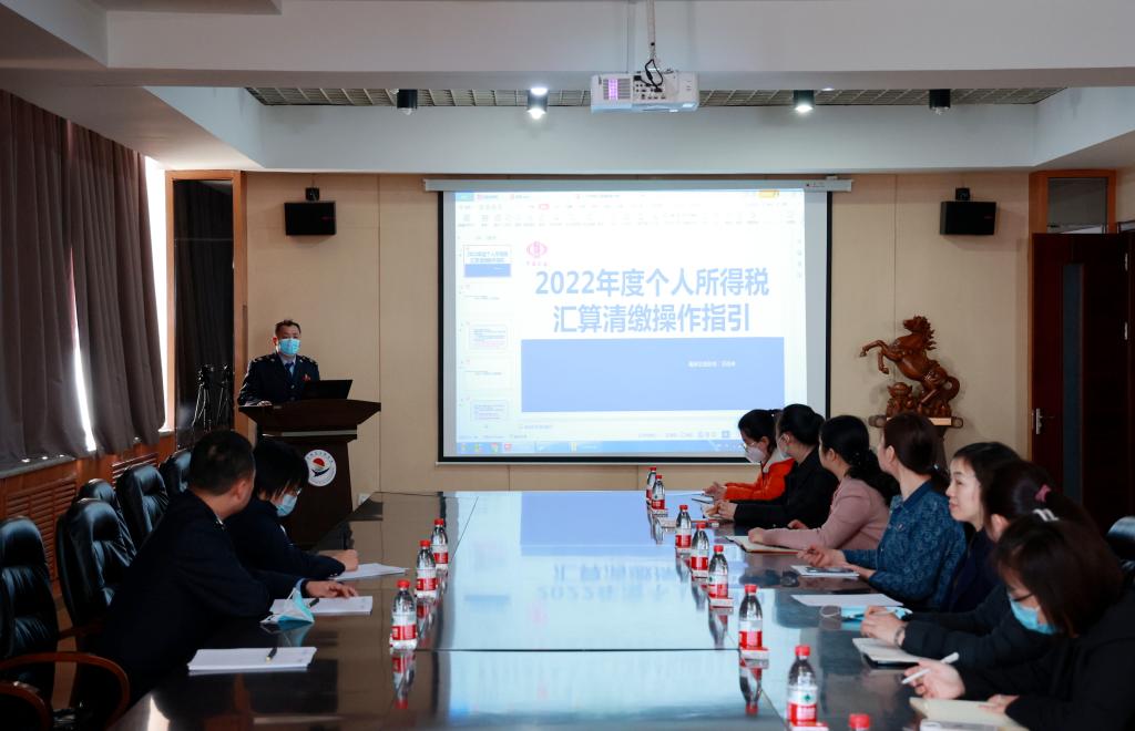 随后,两单位在党建共建和税收政策解读方面进行了深入交流。最后,税政股邱岳峰同志对2022年度个人所得税汇算清缴进行了深度讲解。