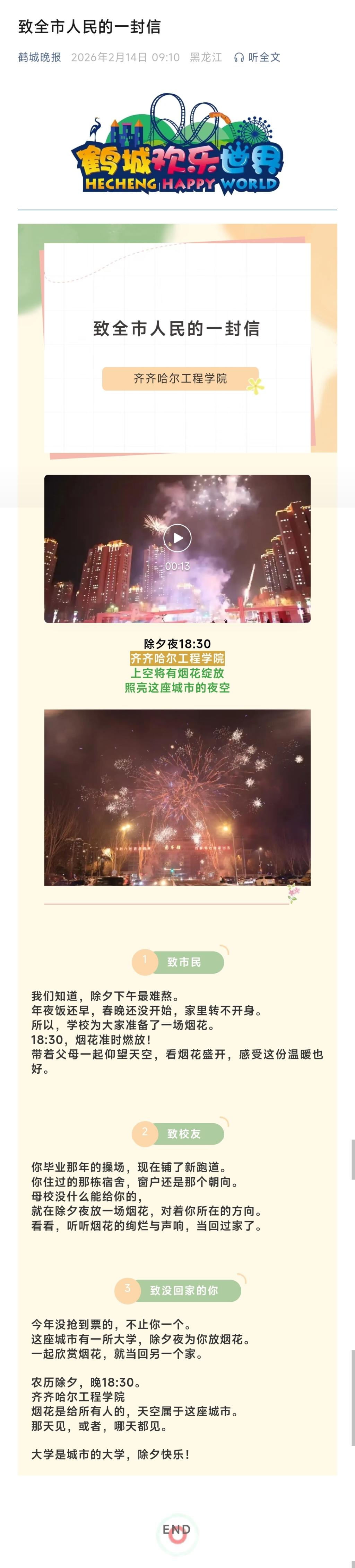 《鹤城晚报》致全市人民的一封信