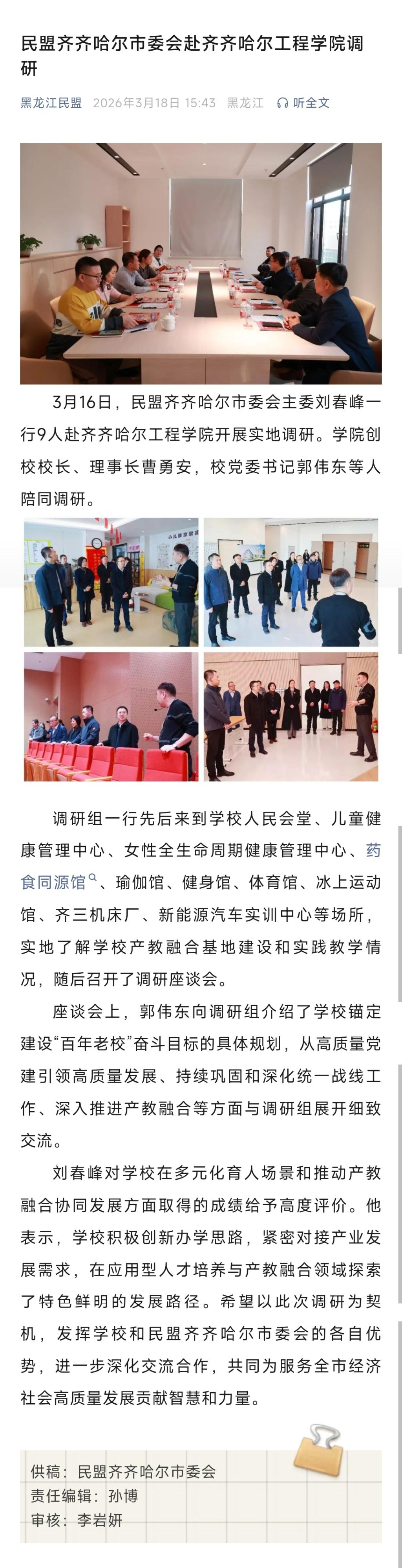 《黑龙江民盟》民盟齐齐哈尔市委会赴齐齐哈尔工程学院调研