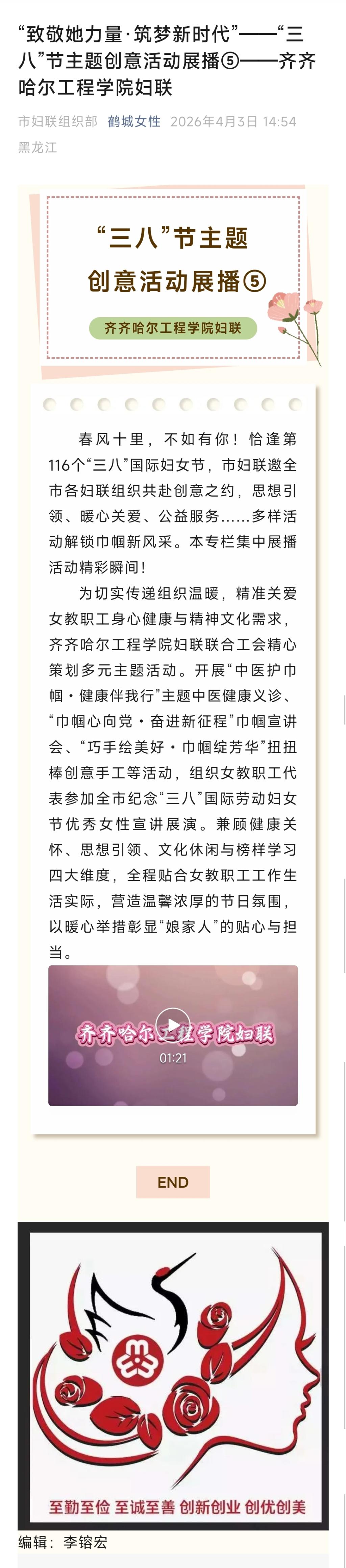 《鹤城女性》“致敬她力量·筑梦新时代”——“三 八”节主题创意活动展播——齐齐哈尔工程学院妇联