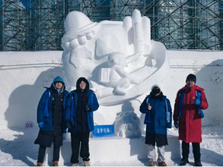 2025年12月11日至14日,由黑龙江省社会科学界联合会指导、省艺术设计协会主办的第十一届黑龙江大学生雪雕大赛在哈尔滨太阳岛风景区启幕,全省10余所高校的25个团队参赛。我校学子将课堂所学转化为创作实践,作品《磨屋仙居》荣获三等奖,凸显了应用型人才培养的质量成效。