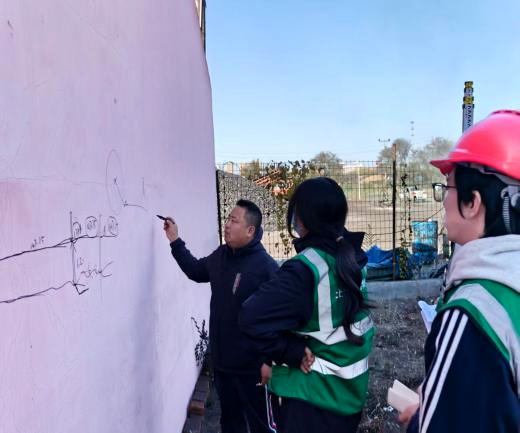 深秋鹤城,寒意渐浓,但校外课堂的学习热情却丝毫不减。师生团队紧跟施工节奏,融入项目一线开展教学研讨与技术验证,将课堂知识有效转化为解决复杂工程问题的能力。这种以“问题”驱动、以“现场”为课堂的教学模式,切实增强了学生的岗位适应力与就业竞争力。