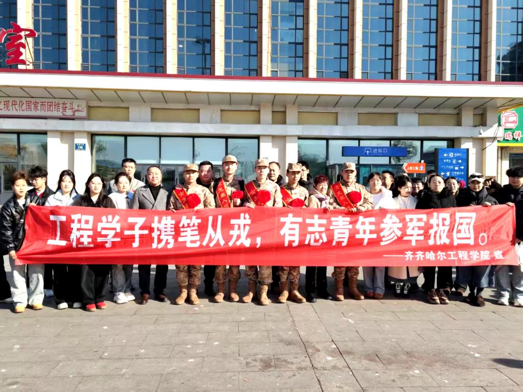 为深入贯彻落实国家征兵工作部署,大力弘扬爱国主义精神,切实做好大学生征兵及后续服务保障工作,3月16日,学校举行2026年春季应征入伍学生欢送活动,为即将奔赴军营的学子们送行。土木与管理学院7名学生身着戎装、胸佩光荣花,带着母校的殷切嘱托与美好祝愿,正式踏上保家卫国的光荣征程。学生工作处处长王丽萍,武装部部长、学生工作处副处长孙晓芳,各学院党委副书记、辅导员、生涯导师、学生代表前往火车站,共同为即将入伍的学生送行。