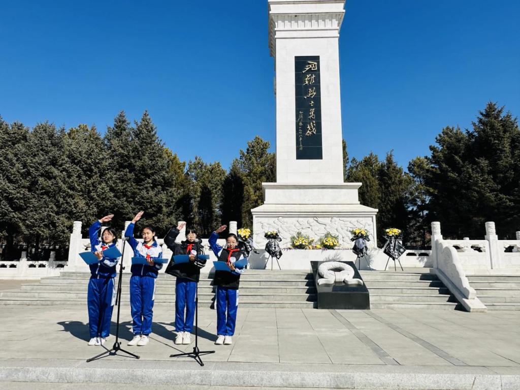 随后,师生代表向纪念碑敬献花篮,以庄重的礼仪致敬为国家和人民英勇献身的革命先辈,感念先烈用生命换来的和平岁月与幸福生活。