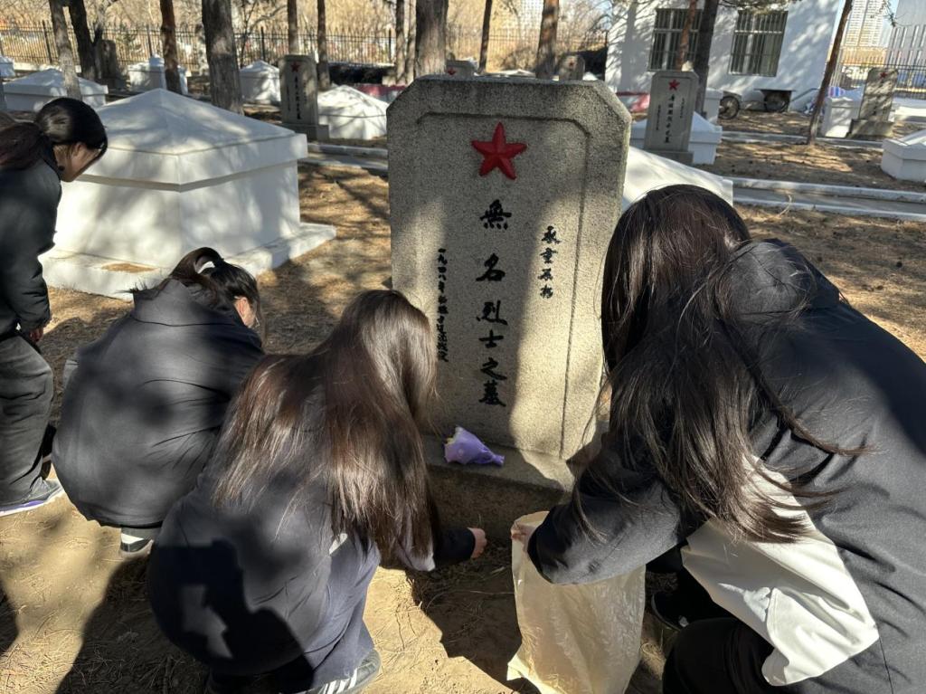 为表达对英烈的深切缅怀与尊崇,全体师生认真清扫英烈墓碑。大家细心擦拭墓碑、清理周边杂草与杂物,以实际行动守护英烈安息之地,感悟革命精神,厚植敬畏之心与爱国情怀。