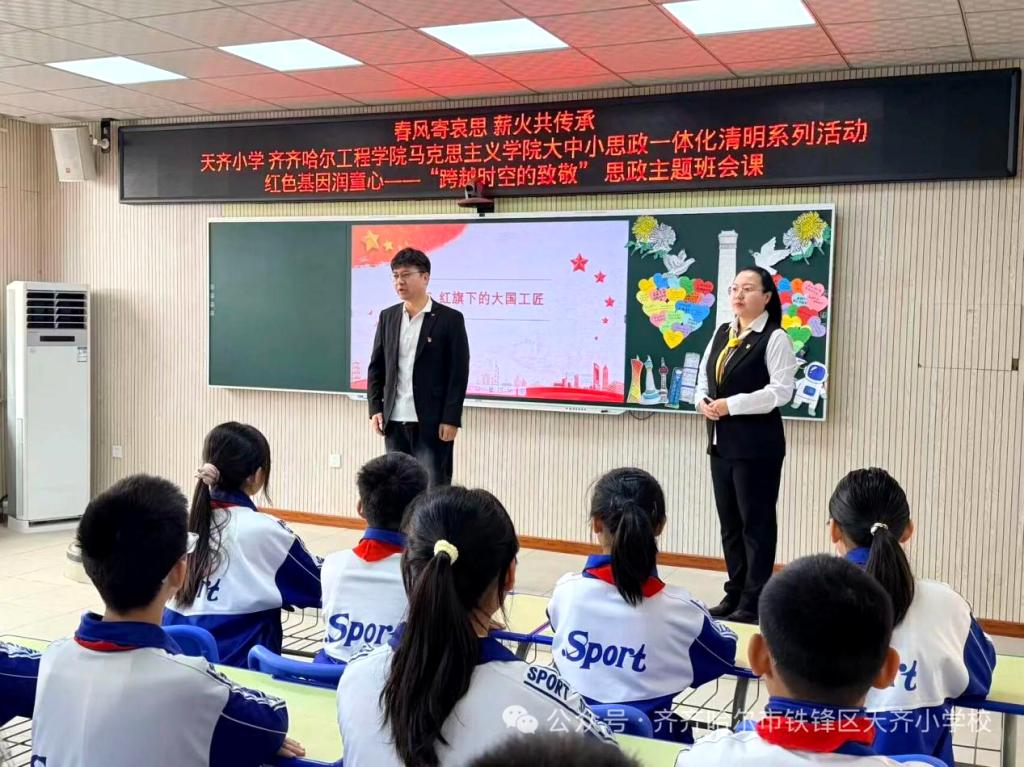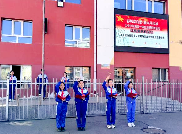 为深入贯彻落实立德树人根本任务,扎实推进大中小学思政课一体化建设走深走实,3月30日,学校马克思主义学院走进天齐小学,开展“春风寄哀思,薪火共传承”主题教育活动。马克思主义学院院长赵婷婷,铁锋区教师进修学校德育部副主任王微,天齐小学相关校领导及我校师生代表共同参加本次活动。