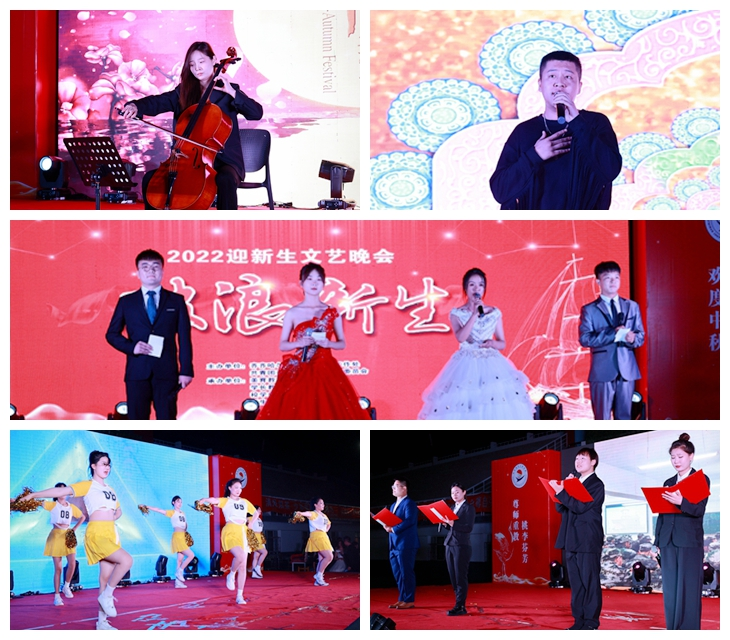管理工程系的舞蹈《oh》展示出大学生青春靓丽的风采;健康与护理系表演的舞蹈《abolescent girls》,节奏动感、活力四射,演出现场气氛热烈;新生辅导员带来的歌伴舞《明月升》,优美的旋律,动听的歌声,令台下师生沉醉其中;基础部张智琛老师演唱的歌曲《鹤城的味道》,由学校党委宣传部尹剑飞老师作词,歌曲借嫩江清流,将鹤城美食娓娓道来,旋律似舞随风,歌声似磬幽韵,赢得了大家的阵阵掌声。机电工程系歌伴舞《我相信》、新生艺术团《歌曲串烧》、建筑工程系舞蹈《shake it》等节目轮番上演,形式多样,内容多彩,引得现场观众的掌声和欢呼声不断。