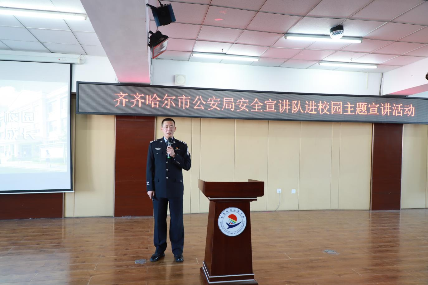 3月4日下午,学校邀请齐齐哈尔市公安局政保支队文保大队大队长李铁军、新闻宣传科科长侯巍、新闻宣传科宣传部主任姚磊等安全宣讲队成员一行7人进校园开展安全主题宣讲活动。学校保卫处和学生工作处管理人员及学生管理骨干等300余名师生参与,活动由保卫处处长成超主持。