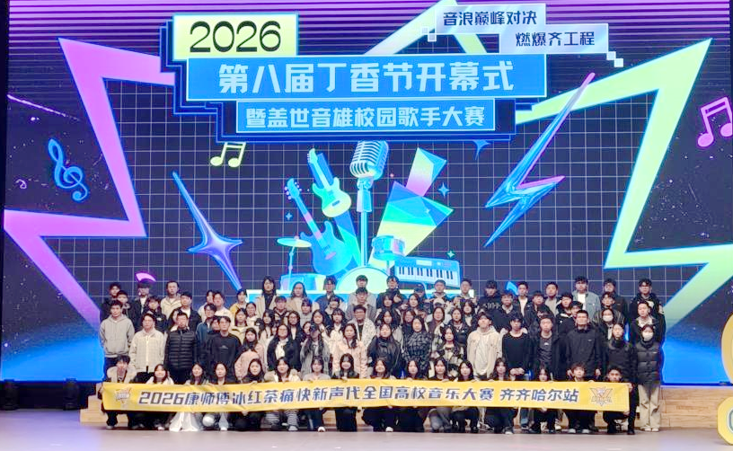 4月24日,由校团委主办,大学生艺术团、校学生会、校社联联合承办的“盖世音雄”校园歌手大赛在我校人民会堂精彩落幕。本次活动同时作为2026年康师傅冰红茶“痛快新声代”全国高校音乐大赛齐齐哈尔站的海选赛,以“音浪巅峰对决,燃爆齐工程”为主题,为全校师生带来了一场兼具青春热情与专业水准的校园音乐盛宴。