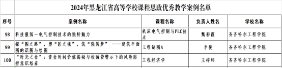 表2 2024年黑龙江省高等学校课程思政优秀教学案例名单